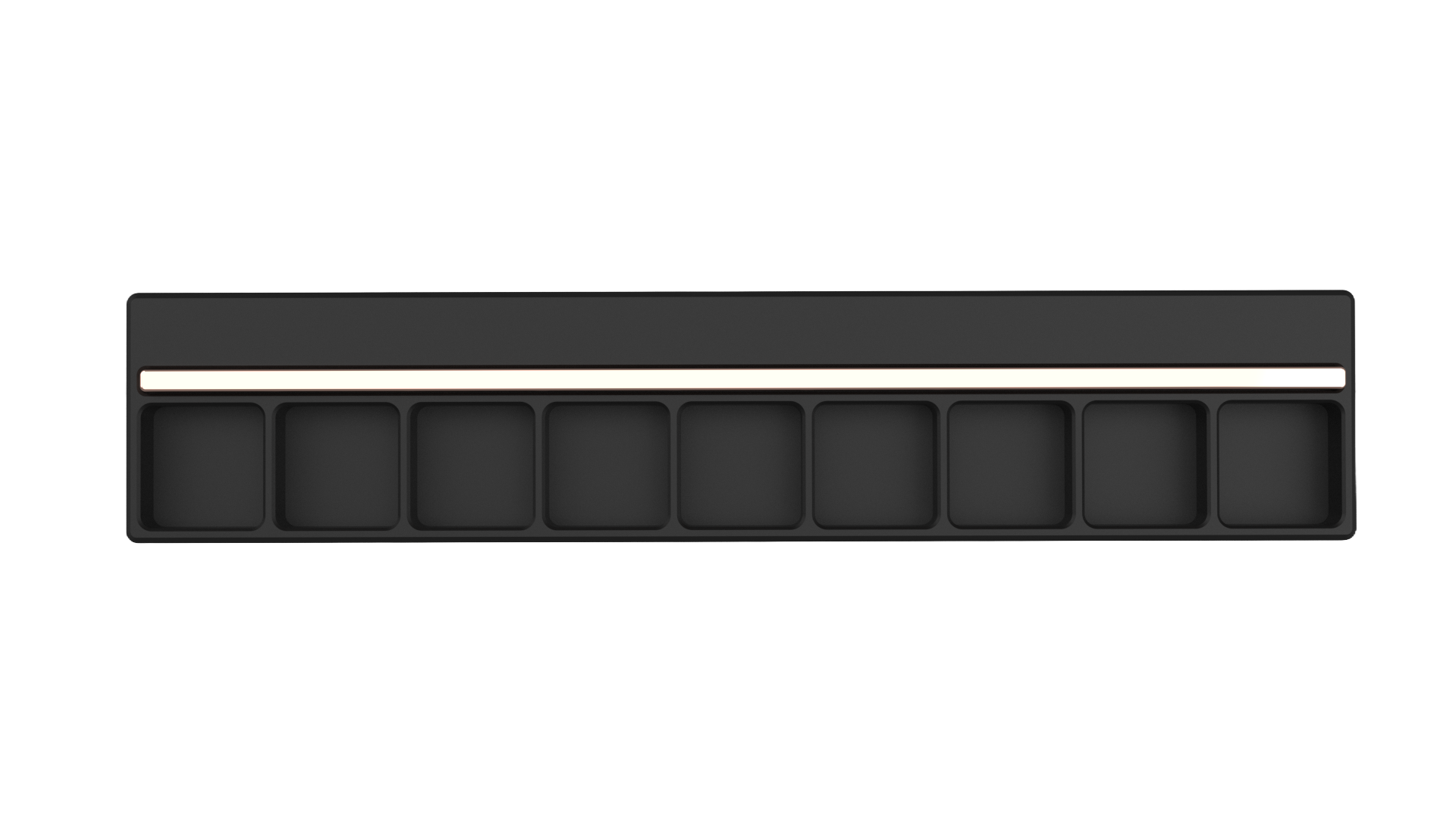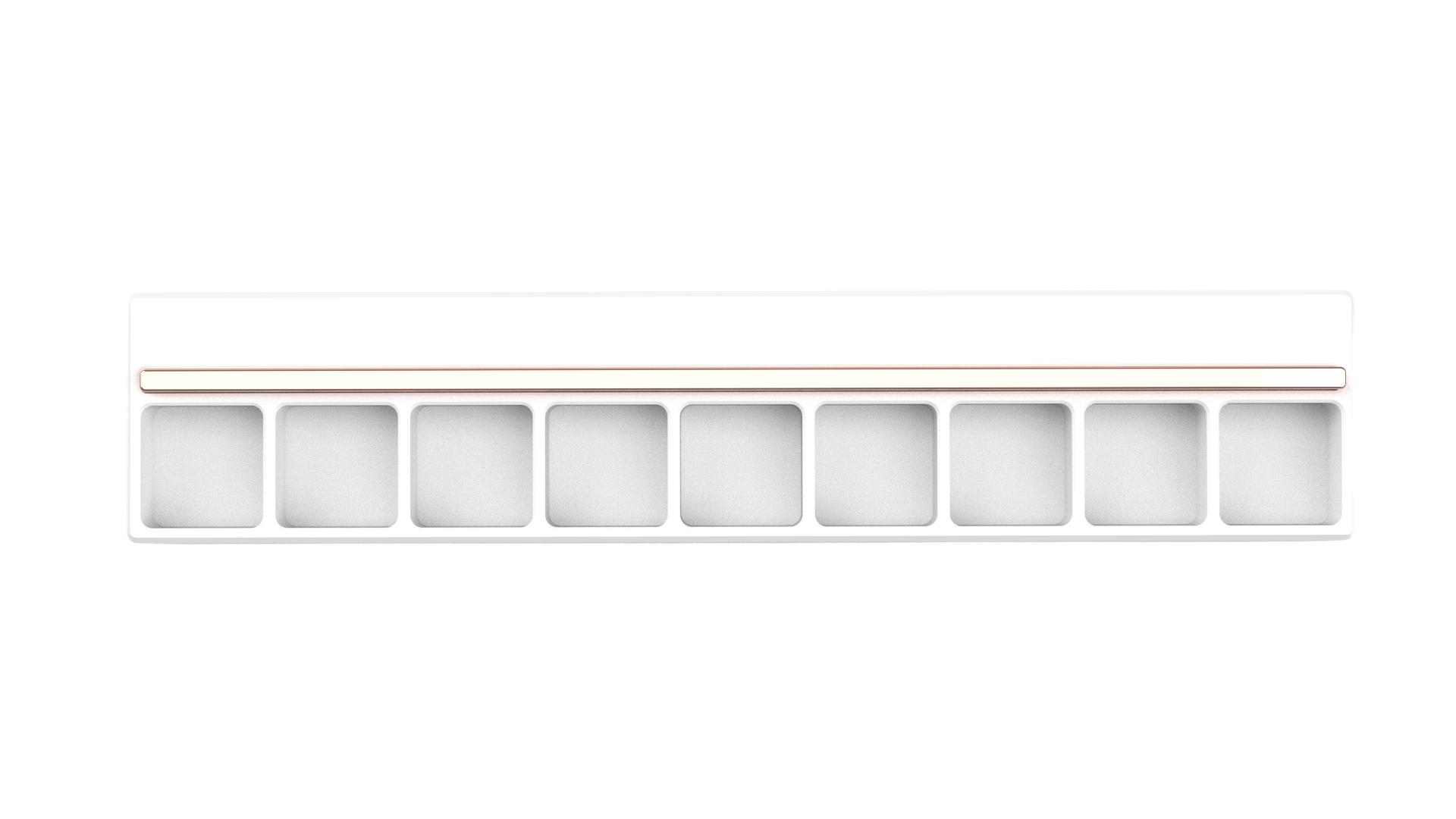 The Bolsa Row is a quirky and minimal artisan tray, designed to be the perfect accent on any desk setup. The artisan tray features 9 artisan slots, and an interchangeable pen rail above.